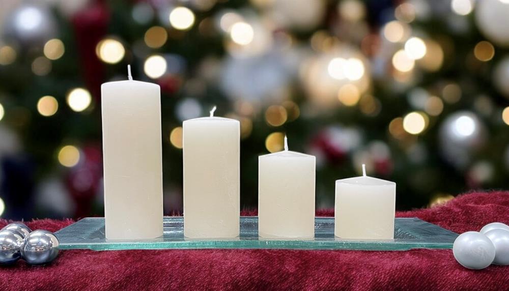 Raureifkerzen Adventsset weiss 4 Kerzen im Durchmesser 60 mm Höhe 60/90/120/160 mm