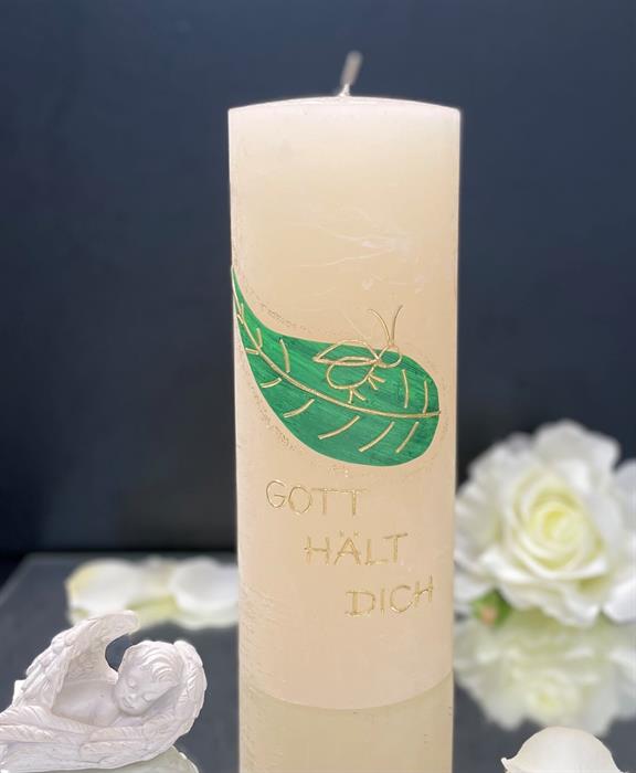 • Gedenk/Trauer-Kerze wollweiss, Gott Hält Dich | Bild 2